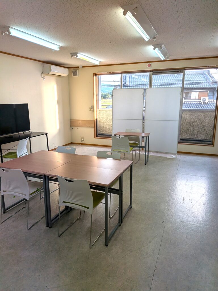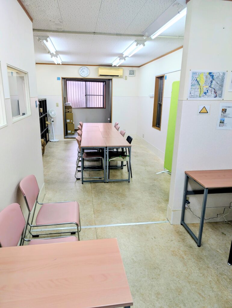 昼食や季節イベントに使える憩いの場であり、作業室としてもフレキシブルに使えるエリアです。